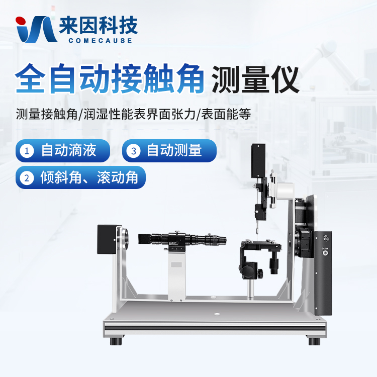 简要描述: 水滴角测量仪是采用外形图像分析(Shape image analysis)方法测量样品表面接触角、润湿性能、表界面张力、表面能、滚动(滑落角)、前进后退角及滞后性、多点自动智能接触角测量等性能的专用设备,设备自动化程度高,可搭配自动化流水线实现在线拟合。